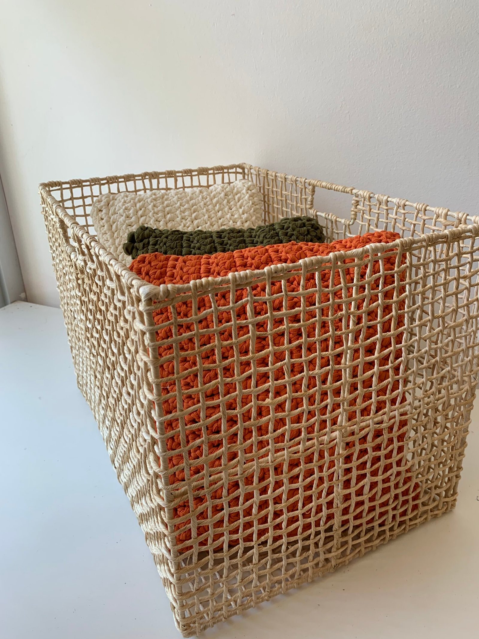 Com seu design elegante e artesanal, ela é ideal para guardar desde mantas e almofadas até revistas e objetos decorativos.