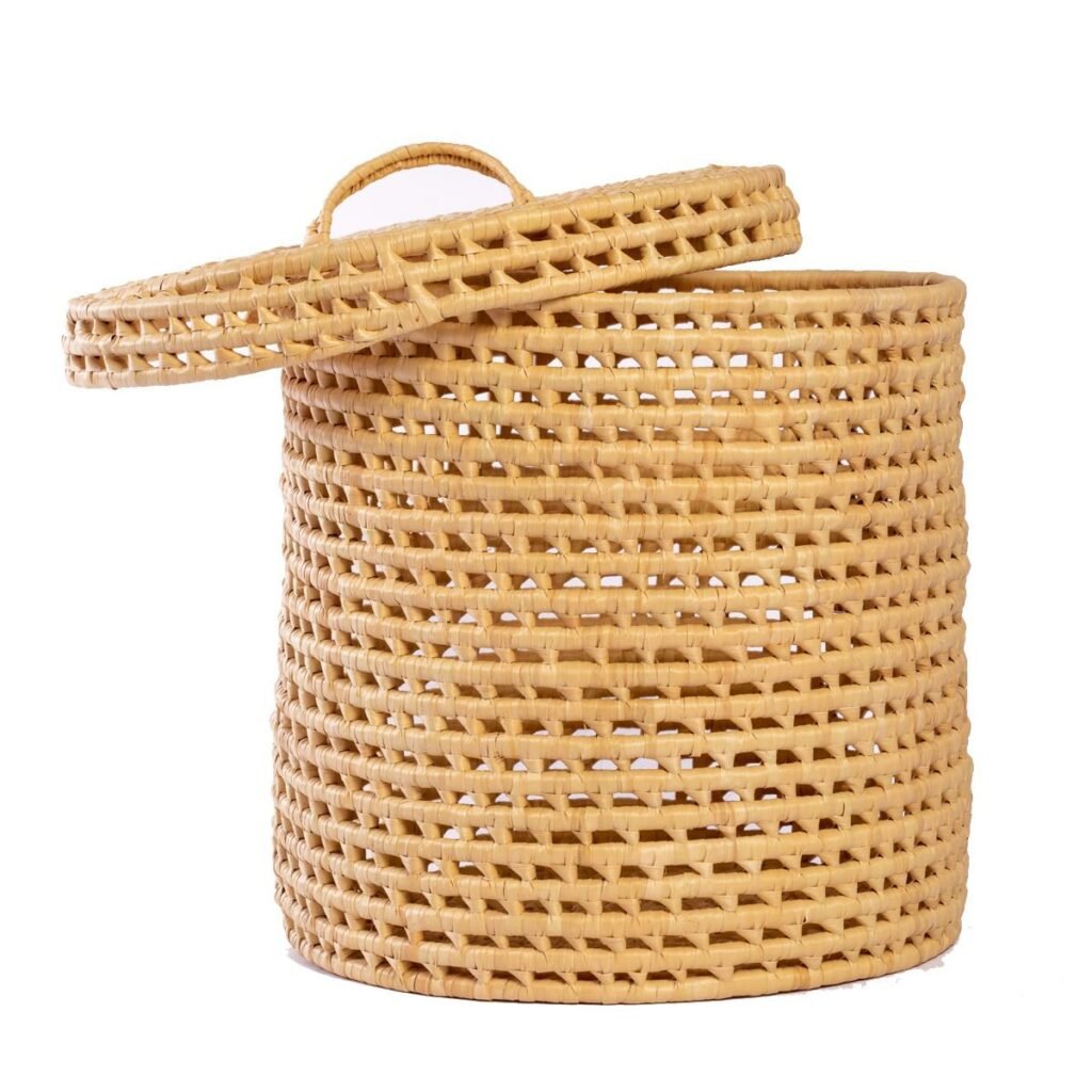Feito à mão com palha de milho, ele combina a beleza natural com a praticidade de um cesto organizador.