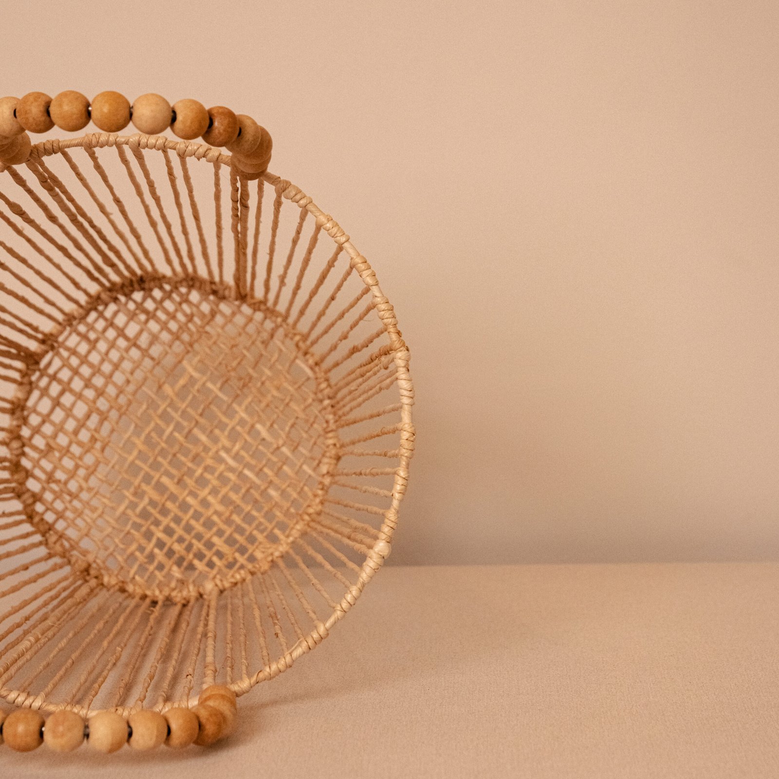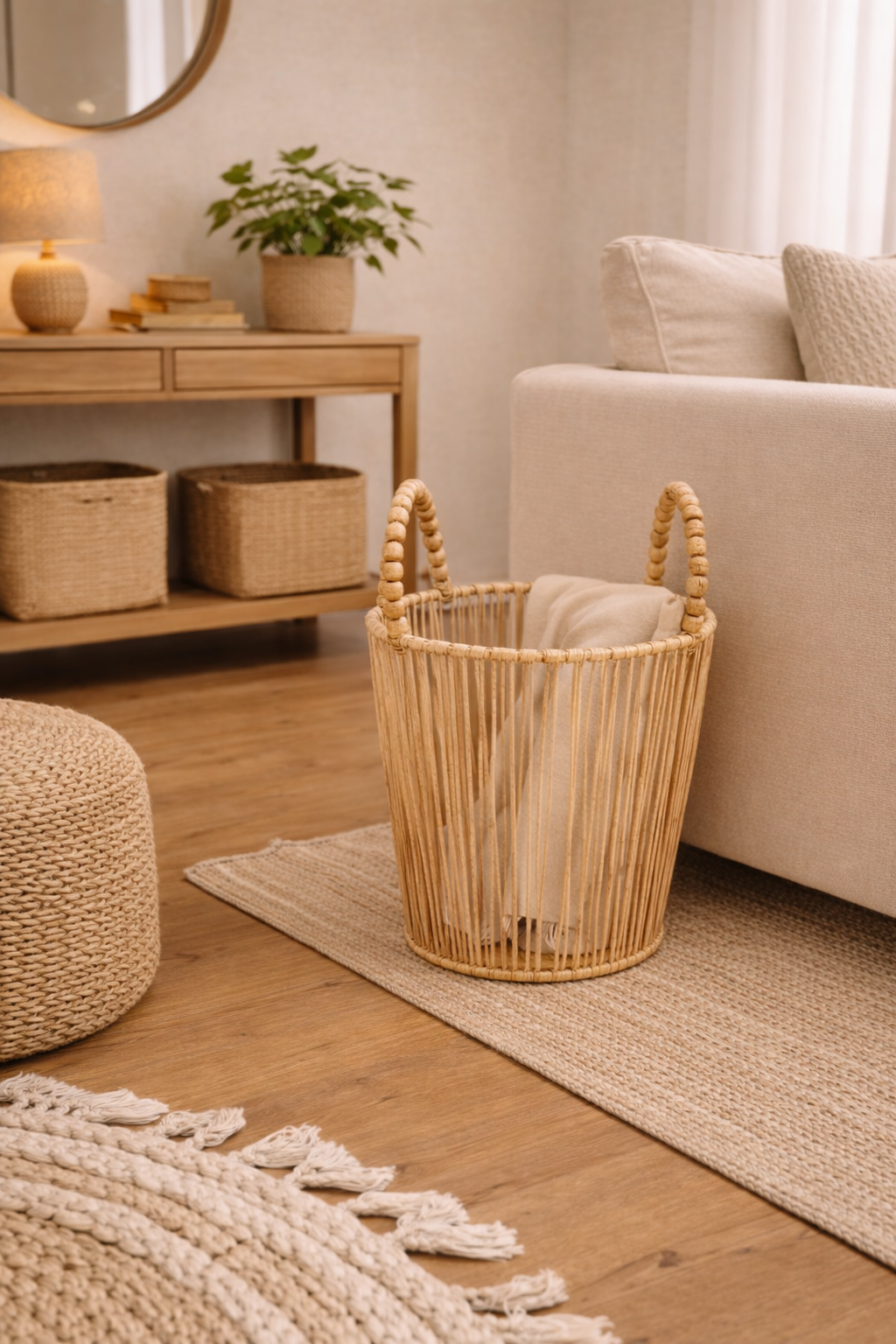 “Sinta a maciez da natureza com o Cesto de Palha Natural Aramado com alça em Miçangas da Waka Decor.