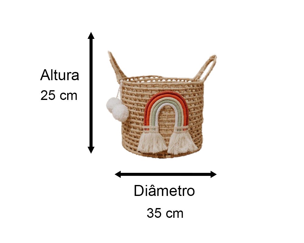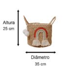 Traga as cores do arco-íris para a sua casa com o nosso cesto em palha! Feito à mão com todo o carinho, ele é perfeito para organizar brinquedos, roupas ou qualquer outro objeto que você queira guardar com estilo. Ideal para quartos de crianças, salas de estar e até mesmo para criar um cantinho especial na sua casa.
