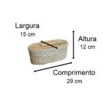 Feito à mão com palha de carnaúba, este cesto versátil é perfeito para diversos ambientes. Com suas medidas ideais (12cm de altura, 15cm de largura e 29cm de comprimento), ele pode ser usado como cachepot, porta objetos ou até mesmo como centro de mesa.