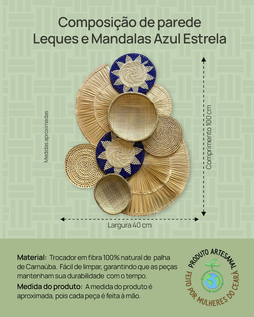Feito à mão com palha de carnaúba, este conjunto versátil é perfeito para qualquer tipo de panela.
