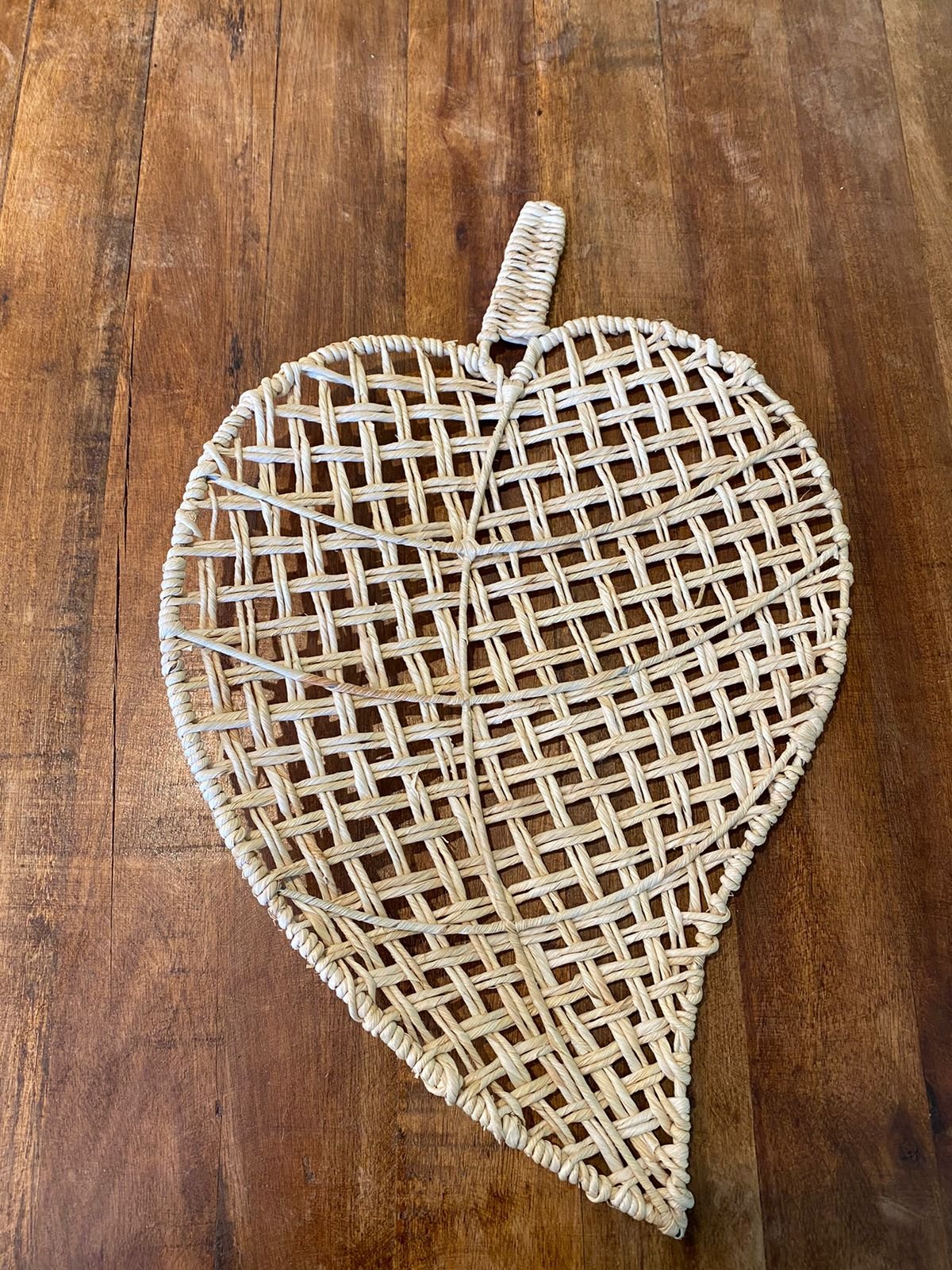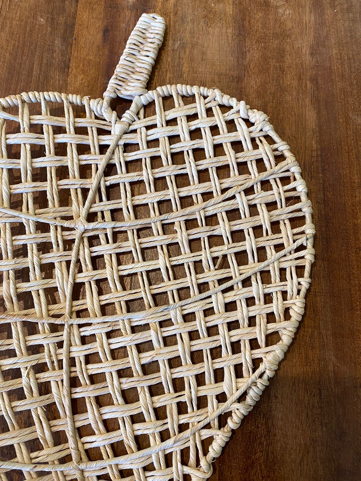 Feita à mão com palha de milho, essa peça única combina funcionalidade e beleza.