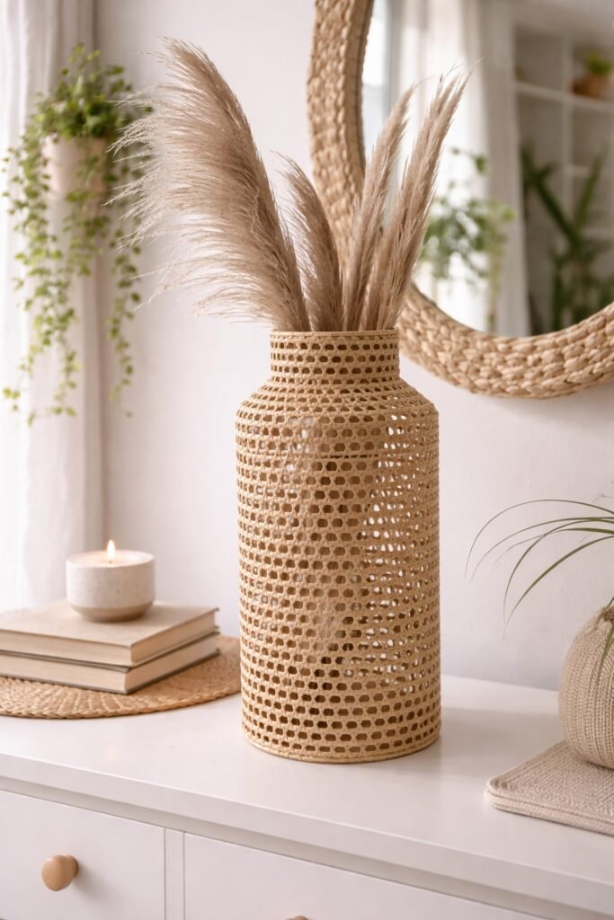 Ideal para decorar mesas, aparadores ou como vaso para plantas, o Jarro de Palha é uma peça versátil e atemporal.