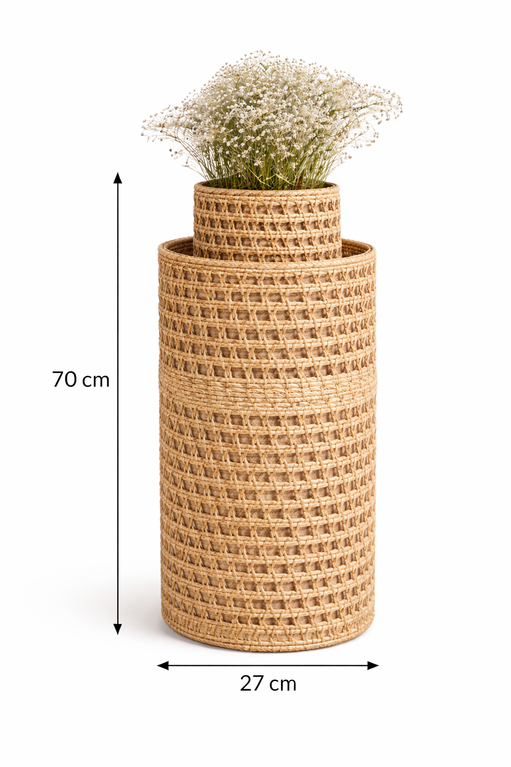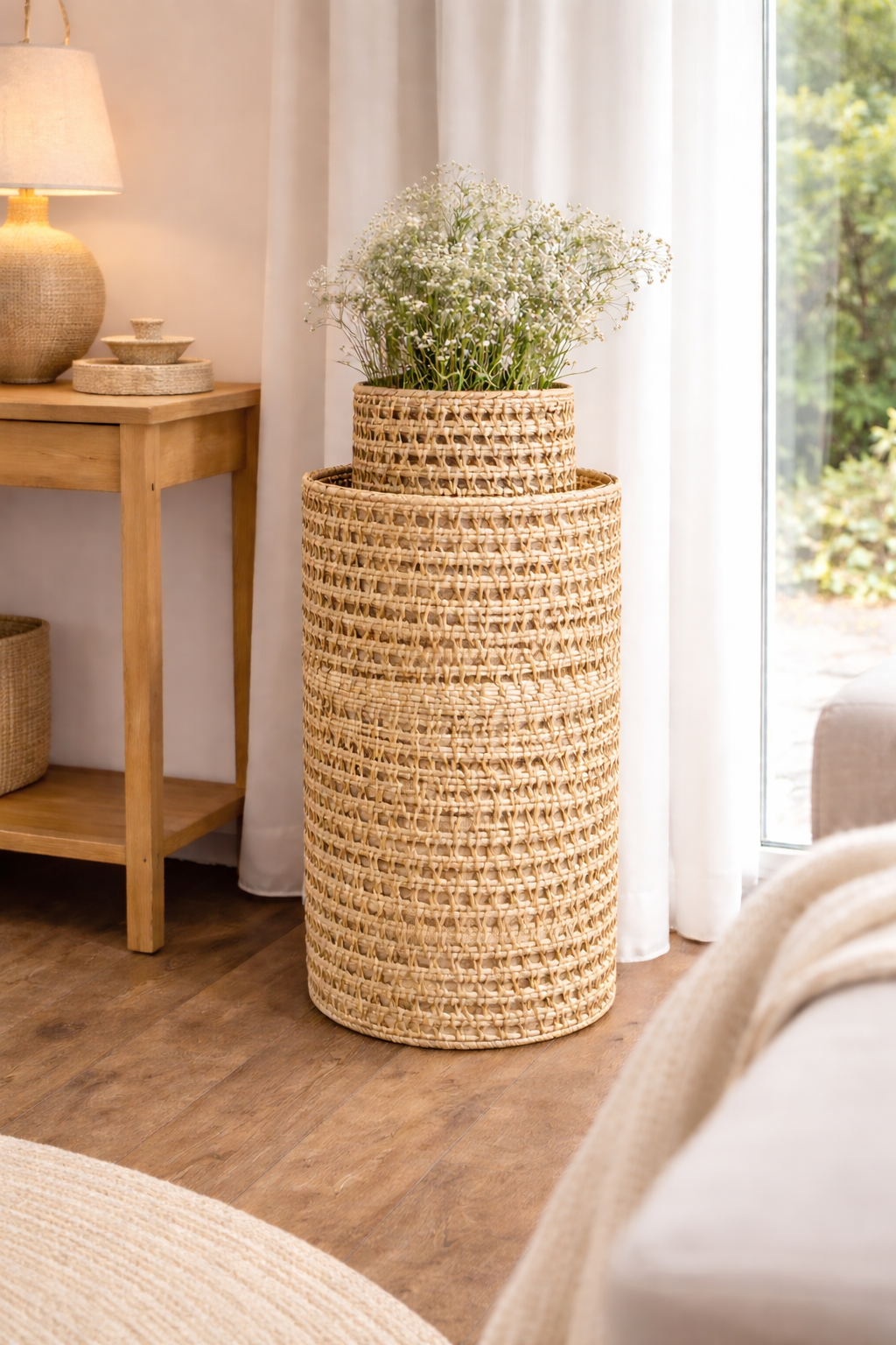 Nosso Jarro em Palha Natural G é perfeito para adicionar um toque de charme e funcionalidade à sua decoração.