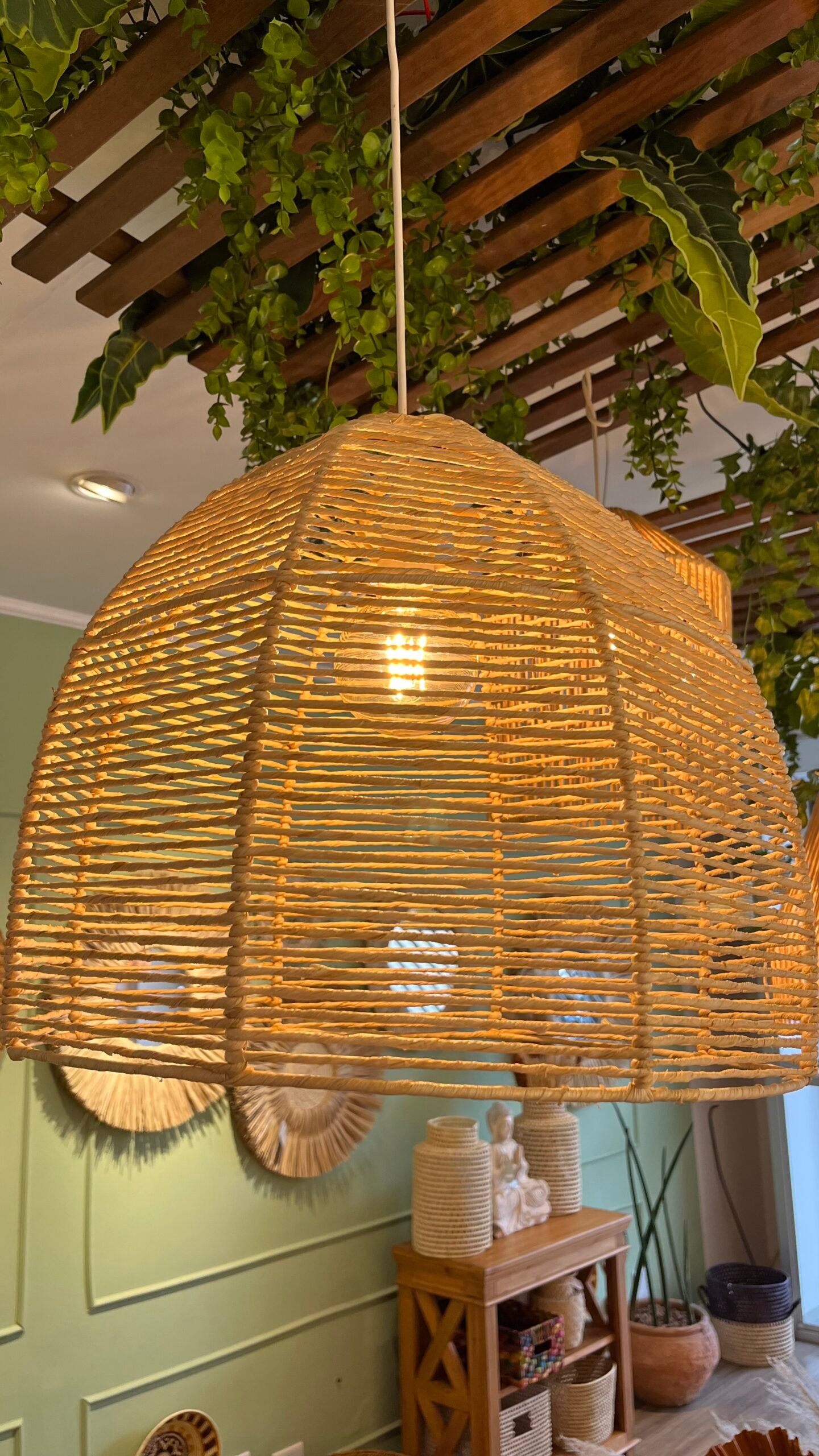 A palha de milho proporciona um toque natural e aconchegante, enquanto a estrutura aramada cria um efeito visual moderno e elegante.