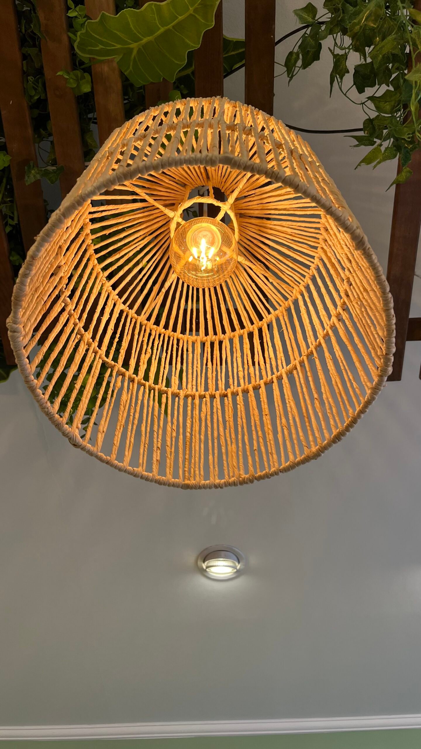 Feita à mão com palha de milho, nossa Luminária Aramada M é uma obra de arte que combina funcionalidade e sustentabilidade.