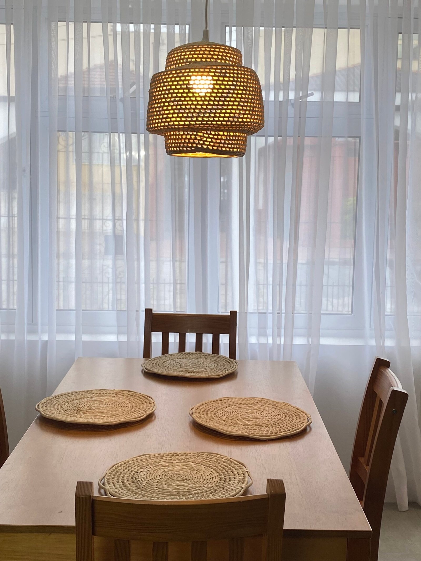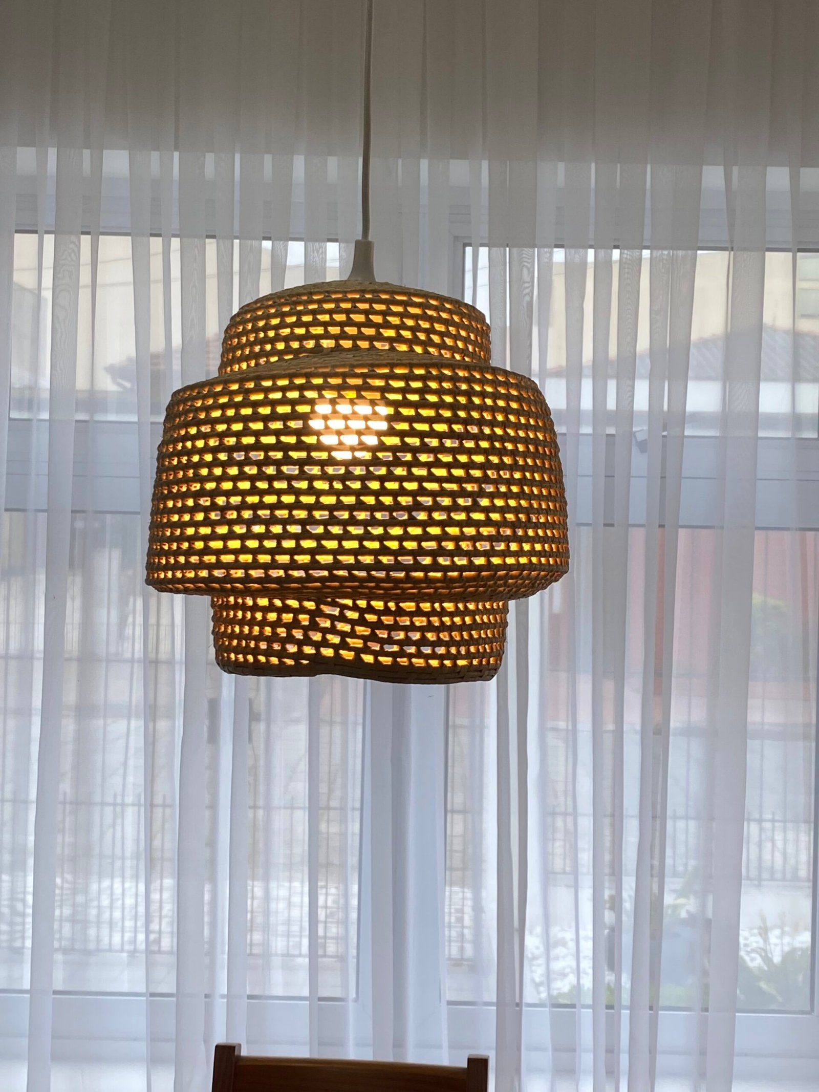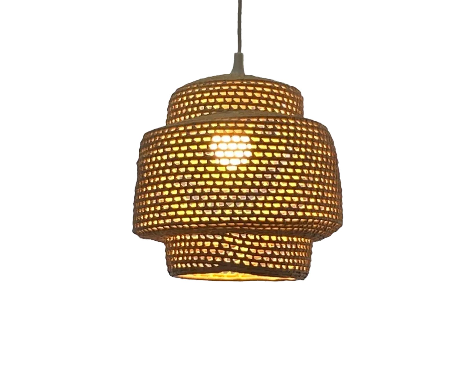 A Luminária Cascatinha, feita à mão com palha de carnaúba, transforma qualquer espaço em um refúgio de tranquilidade. Seu design em camadas, que lembra uma pequena cascata, cria um efeito visual único e aconchegante. Com 36cm de altura e 32cm de diâmetro, ela se adapta perfeitamente a diversos ambientes.
