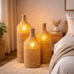 Nossas Luminárias de Chão em Palha Natural Alika trazem um toque de aconchego e sofisticação para qualquer ambiente.