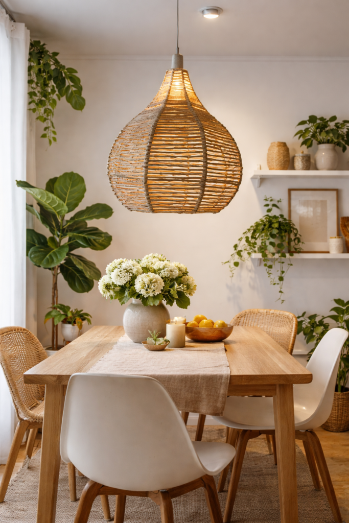 LUMINÁRIA PENDENTE EM PALHA NATURAL OASIS traz um toque de elegante e personalidade no ambiente.