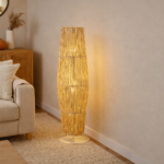 Nossa luminária Aramada de Chão, confeccionada artesanalmente com palha de milho, cria uma atmosfera acolhedora e convidativa em qualquer espaço.