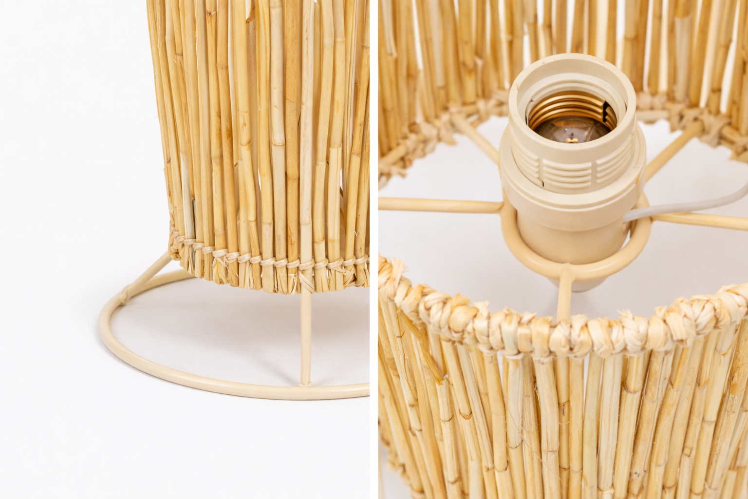 Deixe-se envolver pela calidez da luz natural filtrada pela palha e crie um ambiente único e relaxante.