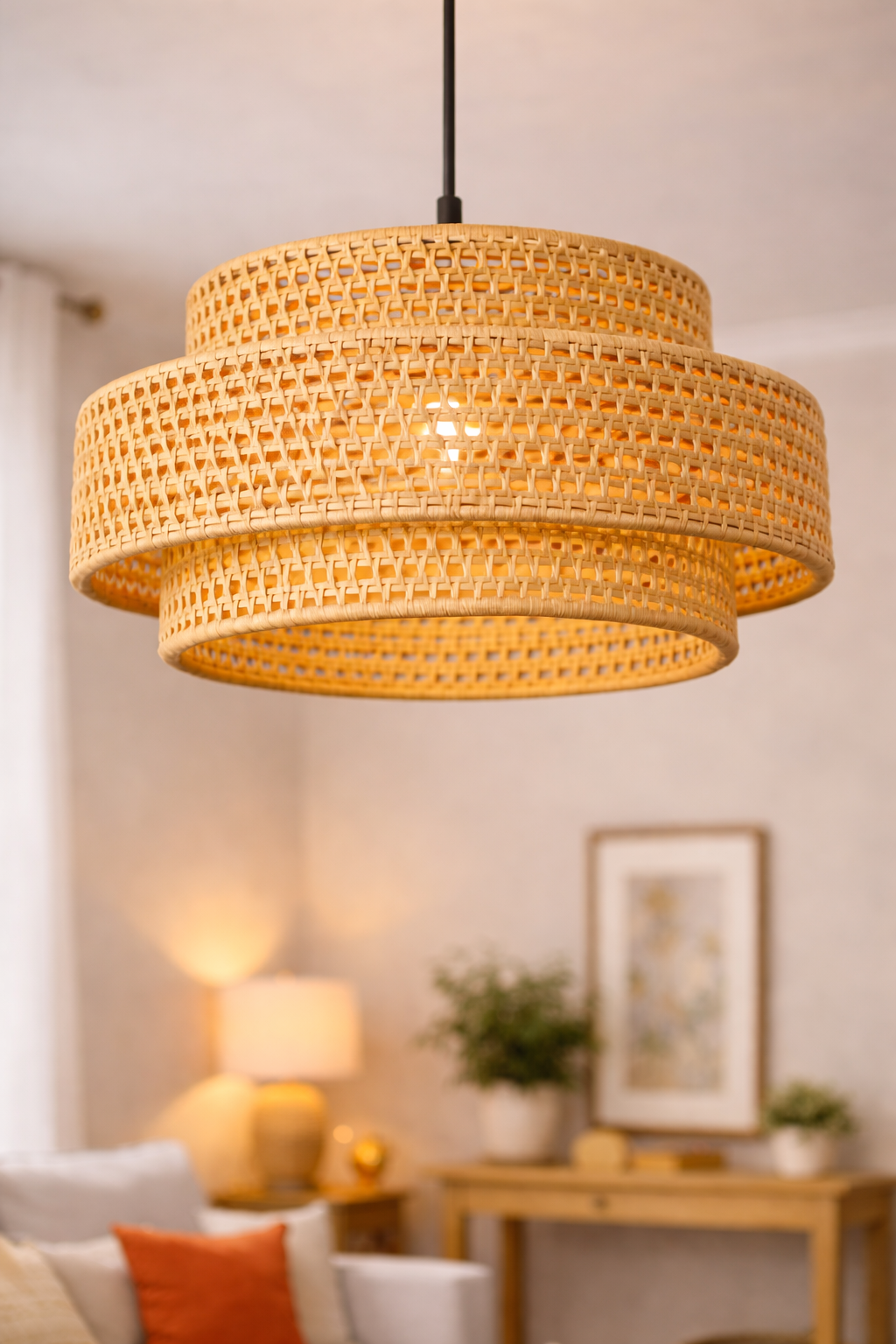 Ilumine seu lar com a beleza natural da Luminária Cascata em Palha de Carnaúba!