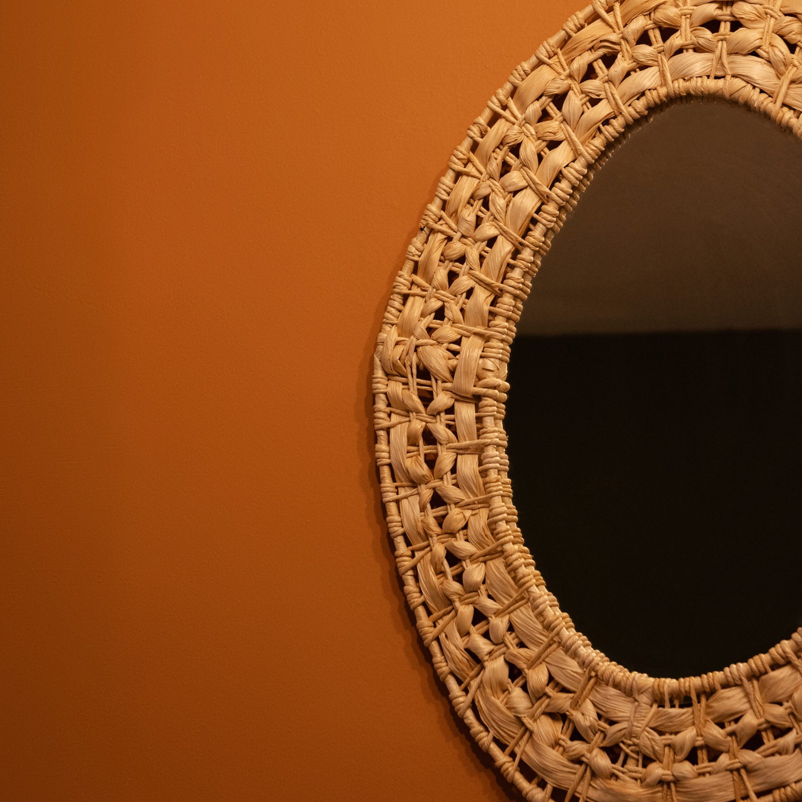 Nossos espelhos orgânicos em palha natural são feitos à mão com materiais naturais.