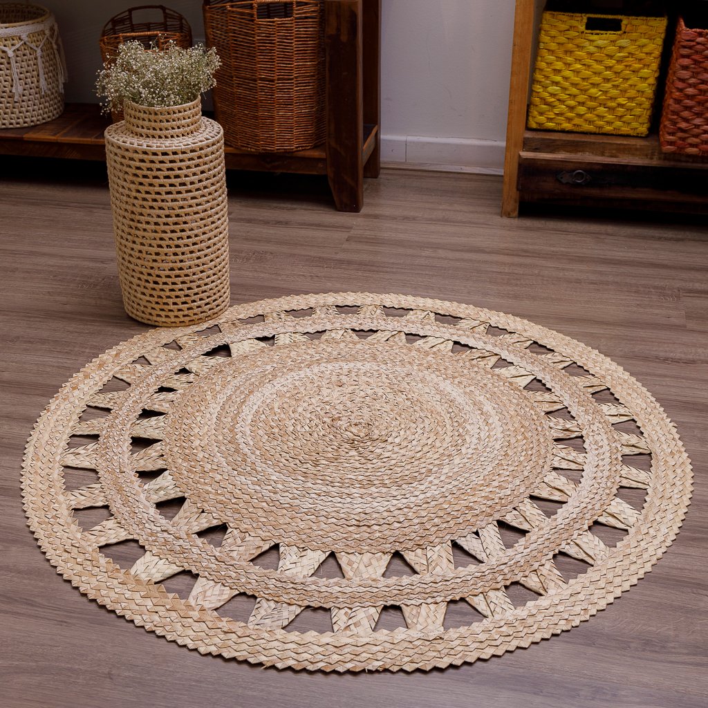 Limpeza Regular: Nosso Tapete Em Palha Natural Mandala Rústico Pronta Entrega 1.50m oferece facilidade na limpeza. Use um pano seco ou um compressor de ar para remover a poeira. Evite o uso de água e produtos químicos. Para revitalização, exponha ao sol por até 40 minutos, uma vez por semana ou a cada 15 dias, dependendo da necessidade