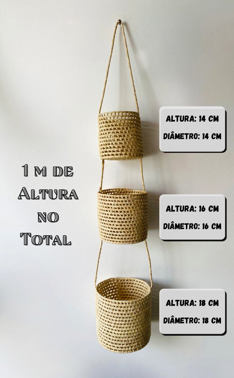 Nosso Trio Cachepô Pendente de Palha de Carnaúba é perfeito para adicionar um toque natural e funcional a qualquer ambiente.